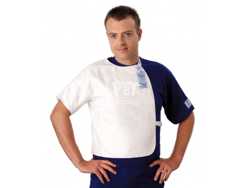Wytrzymałość: 800N Testowany w laboratorium CE. Cienki i lekki z miękką tekstylną warstwą wewnątrz. Dolny elastyczny pasek z klamrą (regulowany), góry pasek na szyję z rzepem.